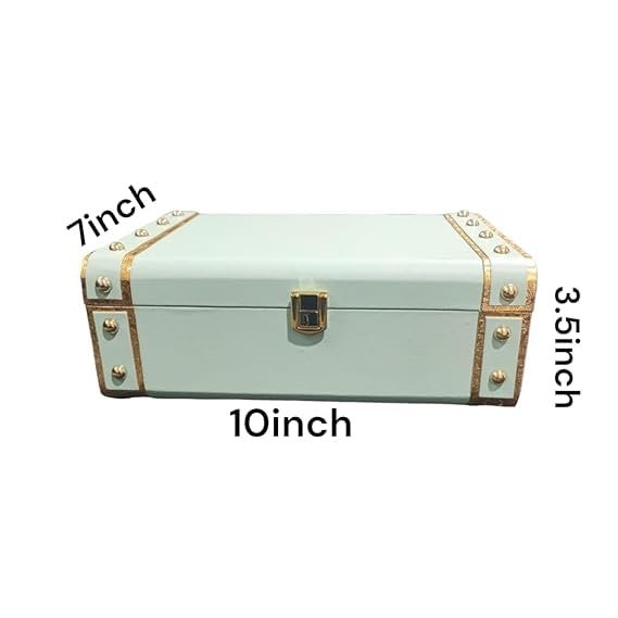 Vintage Decorative Storage Trunk Box ? Mint Green Wooden Organizer with Gold Accents & Metal Lock | Multipurpose Jewelry, Keepsake, Gift Box for Home D?cor (WHITE)
